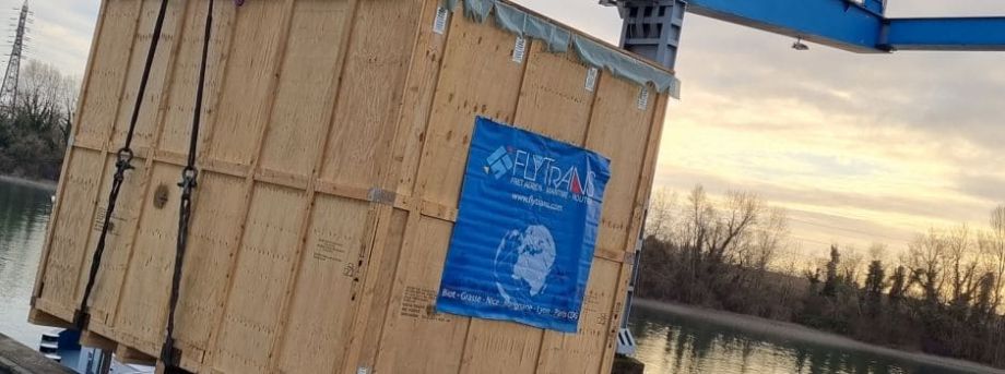- Transhipment on self-propelled river barge (110 x 11.50m) using Strasbourg port’s heavy lift equipment.